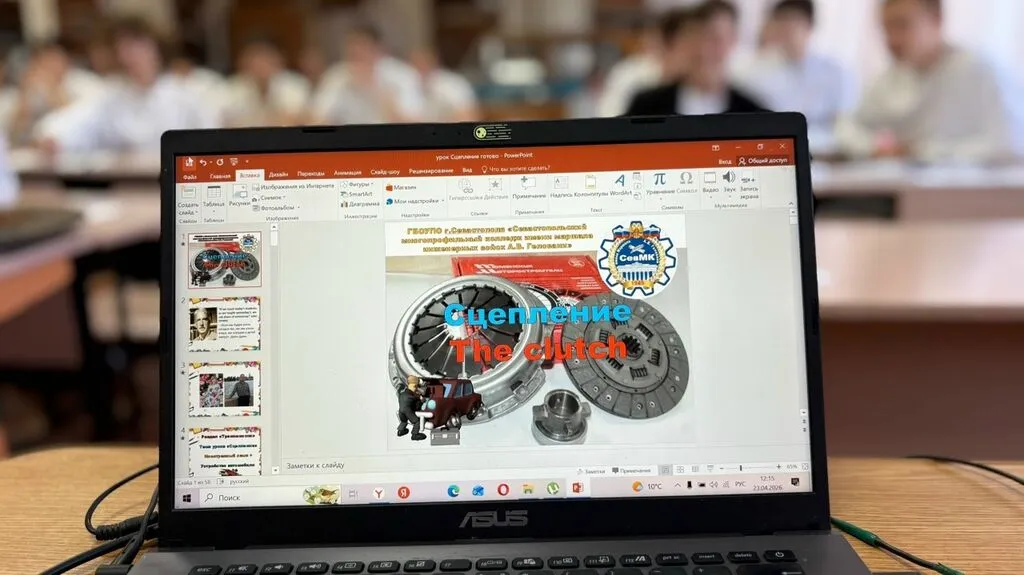 Студенты разбирали устройство и принцип работы сцепления автомобиля и одновременно изучали профессиональную лексику на английском языке по теме «Сцепление» (clutch, clutch plate, pressure plate, release bearing и др.). Были и теория, и практика и интерактивные задания. Ребята практиковались применять английские термины в контексте технических описаний и диалогов, описывали процесс работы сцепления на английском языке.